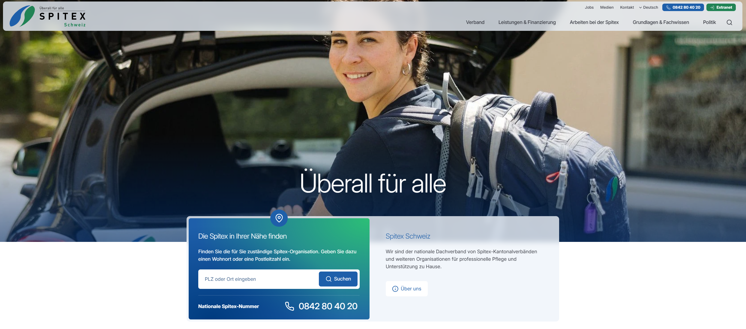 Spitex Schweiz wird per Anfang Februar ihre neue Website aufschalten. Das neue Design wirkt frisch und modern und baut auf den attraktiven Bildern der aktuellen Fotoserie.